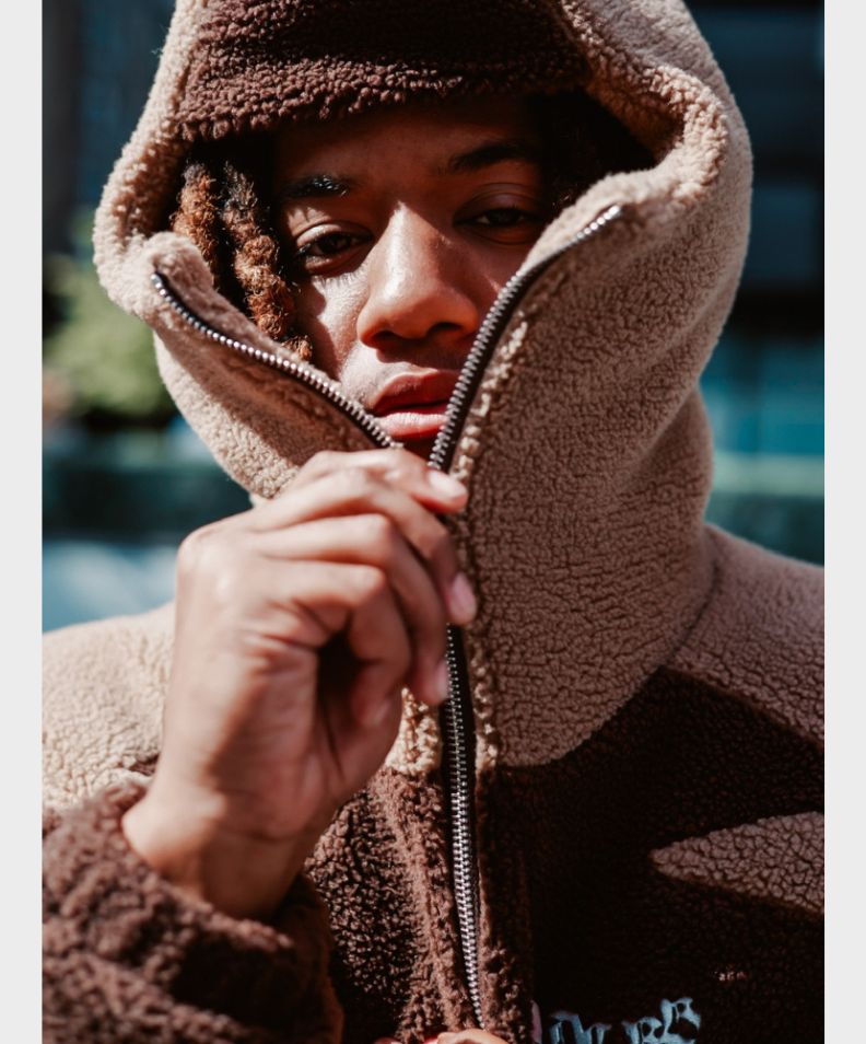 Diese Dunkel- und Hellbraune Ninja-Fleecejacke ist Teil unserer neuen Streetwear-Kollektion DCRB.