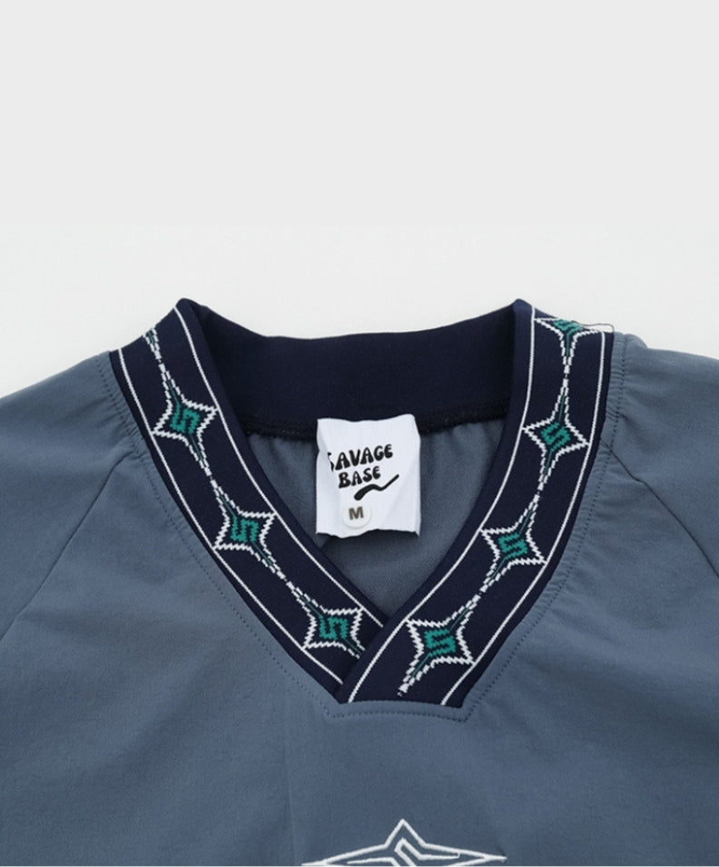 • Klassisches V-Neck-Design mit football-inspirierten Details