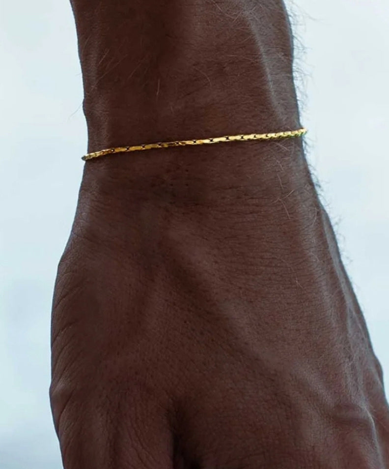 Vervollständige deinen Alltagslook mit unserem DCRB Hammered Bracelet – eine perfekte Kombination aus zeitloser Eleganz und modernem Design. Gefertigt aus hochwertigem Edelstahl, besticht dieses Armband mit einem geometrischen Muster und einer klassischen Gliederkette, ideal für Büro- und Schulalltag. Schlank und vielseitig – das perfekte Detail für jedes Outfit.