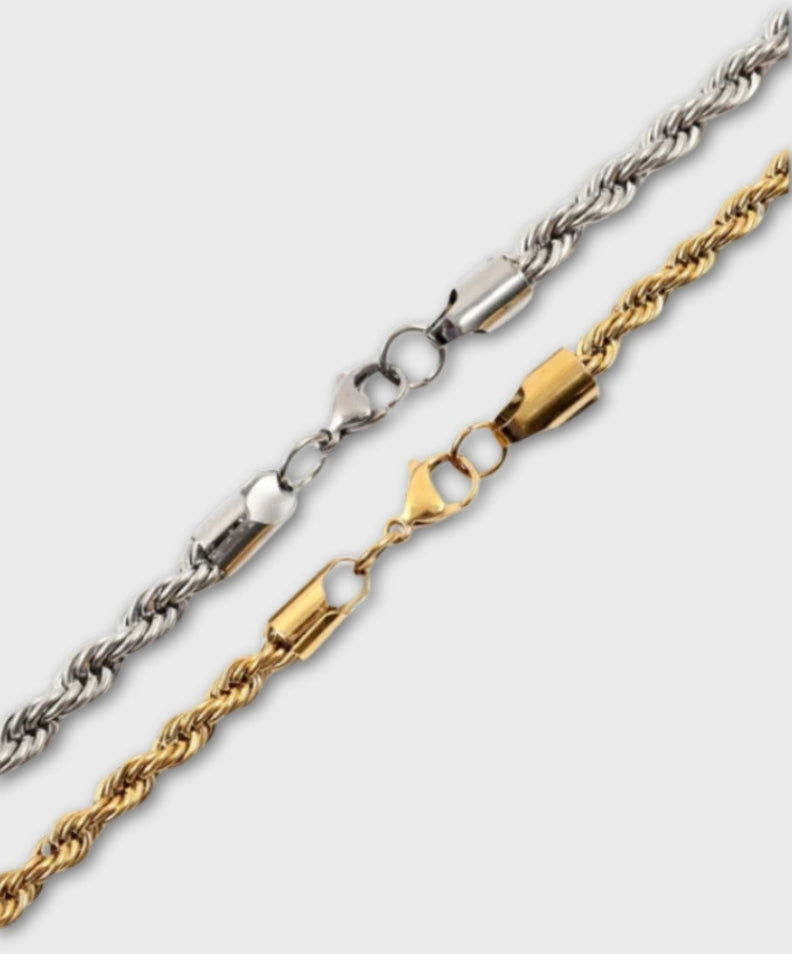 Bringe deinen Stil auf das nächste Level mit unserer DCRB Rope Necklace – eine perfekte Kombination aus hochwertiger Handwerkskunst und zeitlosem Design. Gefertigt aus erstklassigem Edelstahl, vereint diese Kette Langlebigkeit und Stil, wodurch sie zu einem vielseitigen Accessoire für jede Gelegenheit wird. Ideal für alle, die Wert auf Qualität und Funktionalität legen – ein Must-have für deine Alltagsgarderobe.