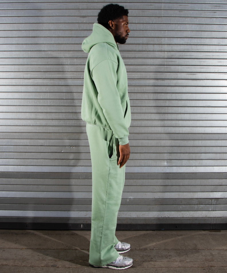 Logo-Positionierung: Oben links auf dem Hoodie, linke Seite in der Nähe der Tasche auf dem Jogger